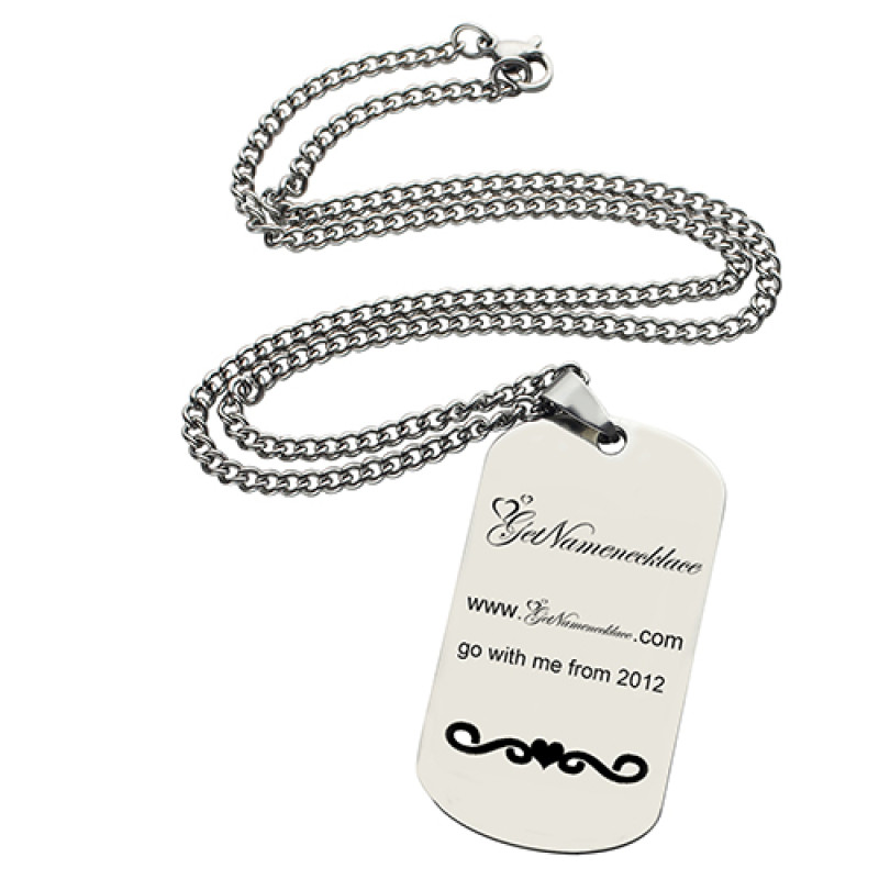 Thickness: 0.18cm/0.072" Pendant Size: 5cmX2.8cm(2"X1.12") Hook: Single Hook Chain type: Cable Chain Material: Titanium Steel Thickness: 0.18cm/0.072" Pendant Size: 5cmX2.8cm(2"X1.12") Hook: Single Hook Chain type: Cable Chain Material: Titanium Steel Name Dog Tag necklace is a Great gift for the best lover in your life!! A large titanium steel nameplate will be stamped anyway you want,and Everything about this piece is sized up for friends. Nothing dainty or petite!