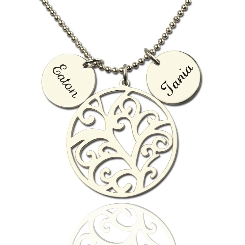 Style: Name Necklace/Love Necklace Pendant Size: 3cm /1.2" Hook: Single Hook Chain type: Bead Chain Material: 925 Silver Style: Name Necklace/Love Necklace Pendant Size: 3cm /1.2" Hook: Single Hook Chain type: Bead Chain Material: 925 Silver   Grandmother Jewelry - Family Tree Necklace with Name Charm Silver - Show your mom some extra love this Mothers Day with the gift of our tree of life with double disc pendant necklace.  This very sweet and sentimental piece of sterling silver tree of life jewelry features two separate discs that are connected by a ring at the top. Our silver message pendant has two or three discs that is printed with name on it and is adorned with two small flowers, The diameter of small disc is about 1.5 CM(0.6 INCH),and the big one is 3 CM(1.2 INCH).  That have an oxidized finish for an Antique Styled look.