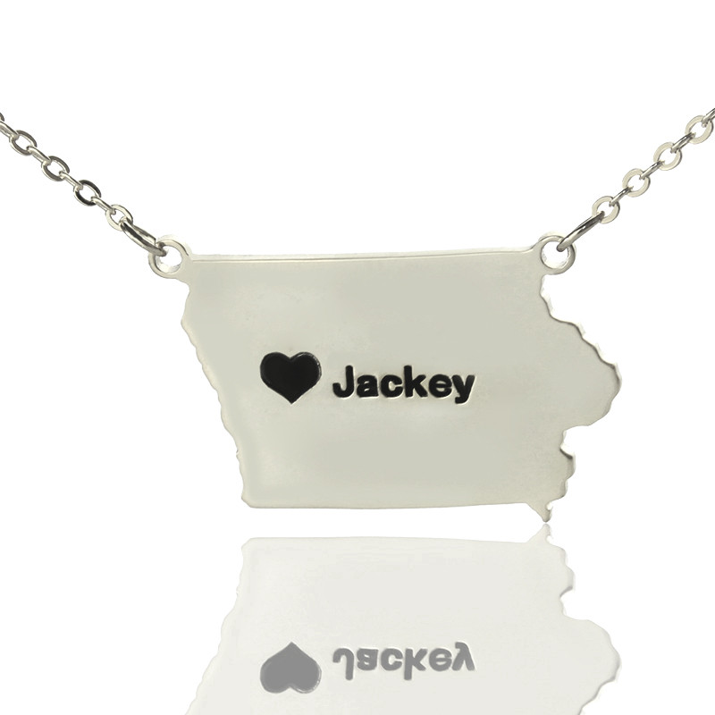 Style: Name Necklace/Letter Necklace Thickness: 1.2mm/0.047" Pendant Size: 3cm*2.2cm/(1.18“ *0.87'' ) Hook: Double Hooks Chain type: Cable Chain Material: 925 Silver Style: Name Necklace/Letter Necklace Thickness: 1.2mm/0.047" Pendant Size: 3cm*2.2cm/(1.18“ *0.87'' ) Hook: Double Hooks Chain type: Cable Chain Material: 925 Silver Iowa State Necklace - This is the popular USA state necklace .With your birth in state shaped necklaces will be the commemorative value things.     Material:925 Silver   Color:Silver   State:Iowa    Word style:Blackbody