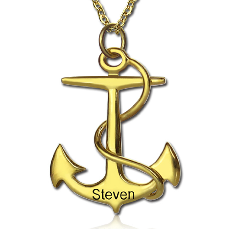 Anchor Necklace Charms Engraved Your Name 18ct Gold Plated Silver