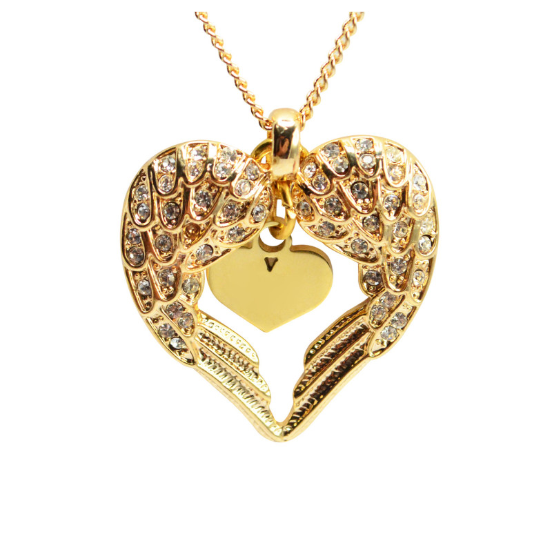 Personalised Angels Heart Necklace with Heart Insert - 18ct Gold Plated