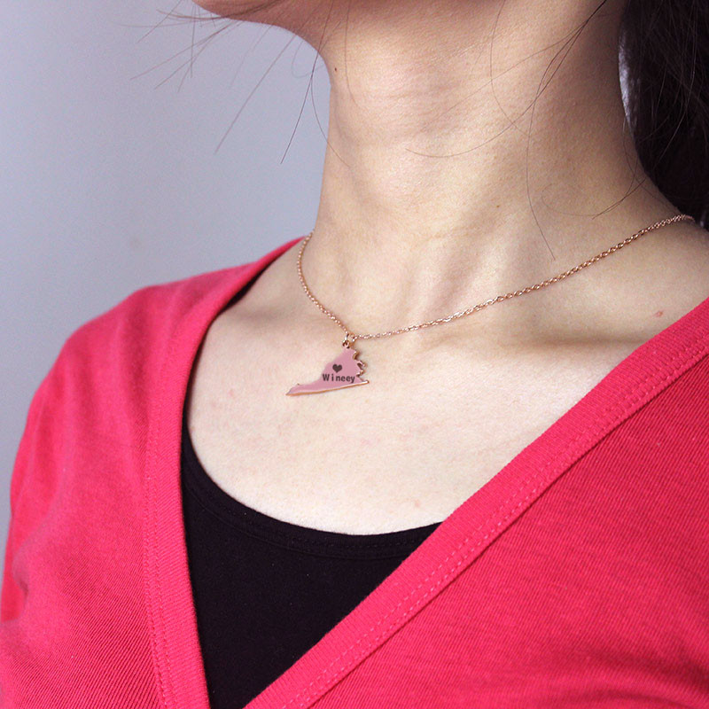 Style: Name Necklace/Letter Necklace Pendant Size: 2.9cm*1.7cm/(1.14“ *0.669'' ) Hook: Single Hook Chain type: Cable Chain Material: 925 Silver Style: Name Necklace/Letter Necklace Pendant Size: 2.9cm*1.7cm/(1.14“ *0.669'' ) Hook: Single Hook Chain type: Cable Chain Material: 925 Silver This is the popular USA state necklace .With your birth in state shaped necklaces will be the commemorative value things.     Material:925 Silver   Color:Rose Gold   State:Virginia    Word style:Blackbody