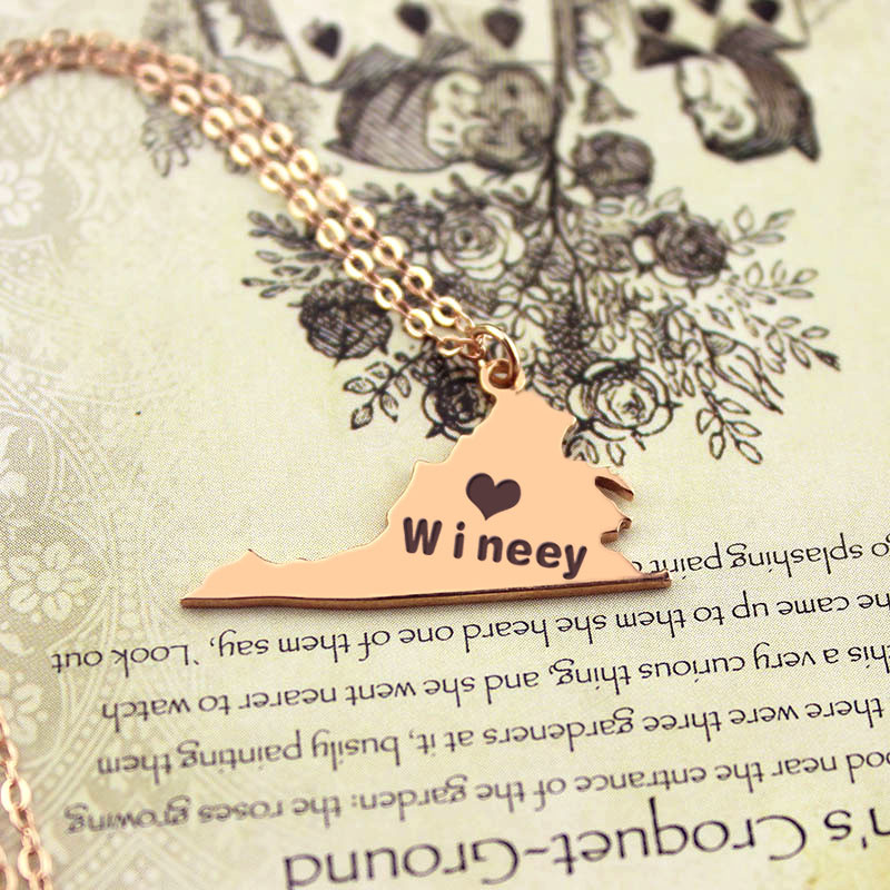 Virginia State USA Map Necklace With Heart Name Rose Gold