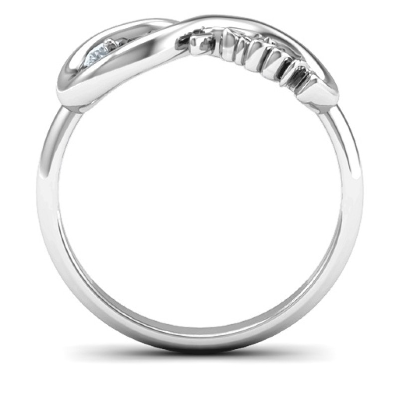 Main Stone: One 2.5mm Round Stone Max Ring Width: 7.5mm Min Band Width: 2 mm Max Band Width: 2.6 mm.Our classic Infinity Ring design with 'faith' woven in. The perfect gift for the girl going through her sacraments or rights of passage. Accent it with a stone or birthstone of your choice.