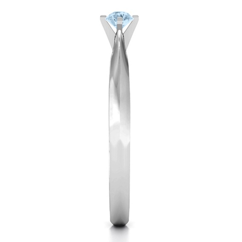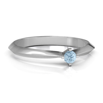 Main Stone: One 3mm Round Stone Max Ring Width: 4mm Min Band Width: 1mm Max Band Width: 2mm.This 3mm stone ring is classic and beautiful but with a modern twist. Knife edge detail of the shank makes it unique and interesting while still being a gorgeous piece. Feature the swarovski stone or birthstone of your choice, or even a glistening diamond. This ring is the perfect way to make the promise of love and commitment to your gorgeous girlfriend.