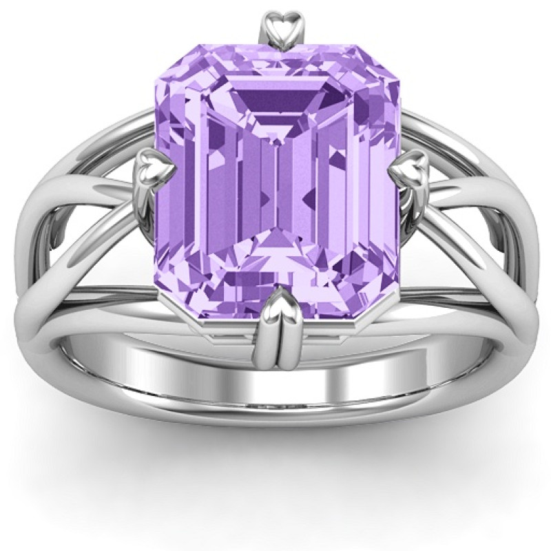Main Stone: One 12mm x 10mm (5 ct) Emerald Cut Stone Max Ring Width: 12.2mm Min Band Width: 2.8 mm Max Band Width: 10 mm.A stunning, large octagonal stone of your choice set in a wire, filigree detailed base. Choose your metal and engraving to make it one-of-a-kind.