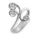 Main Stones: Three 3mm Round Stones Max Ring Width: 19mm Min Band Width: 1.6 mm Max Band Width: 2.8 mm.Fall in love with the soft swirls of this elegant design, inspired by the gentle waves of a sparkling ocean. A 3mm round-cut gemstone shimmers in the centre of each of the three swirls extending from the unique split-shank band. Personalise this ring with special birthstones and the metal of your choice to make your ring one-of-a-kind. Engrave a special message along the band to create the perfect gift for yourself or someone you love.